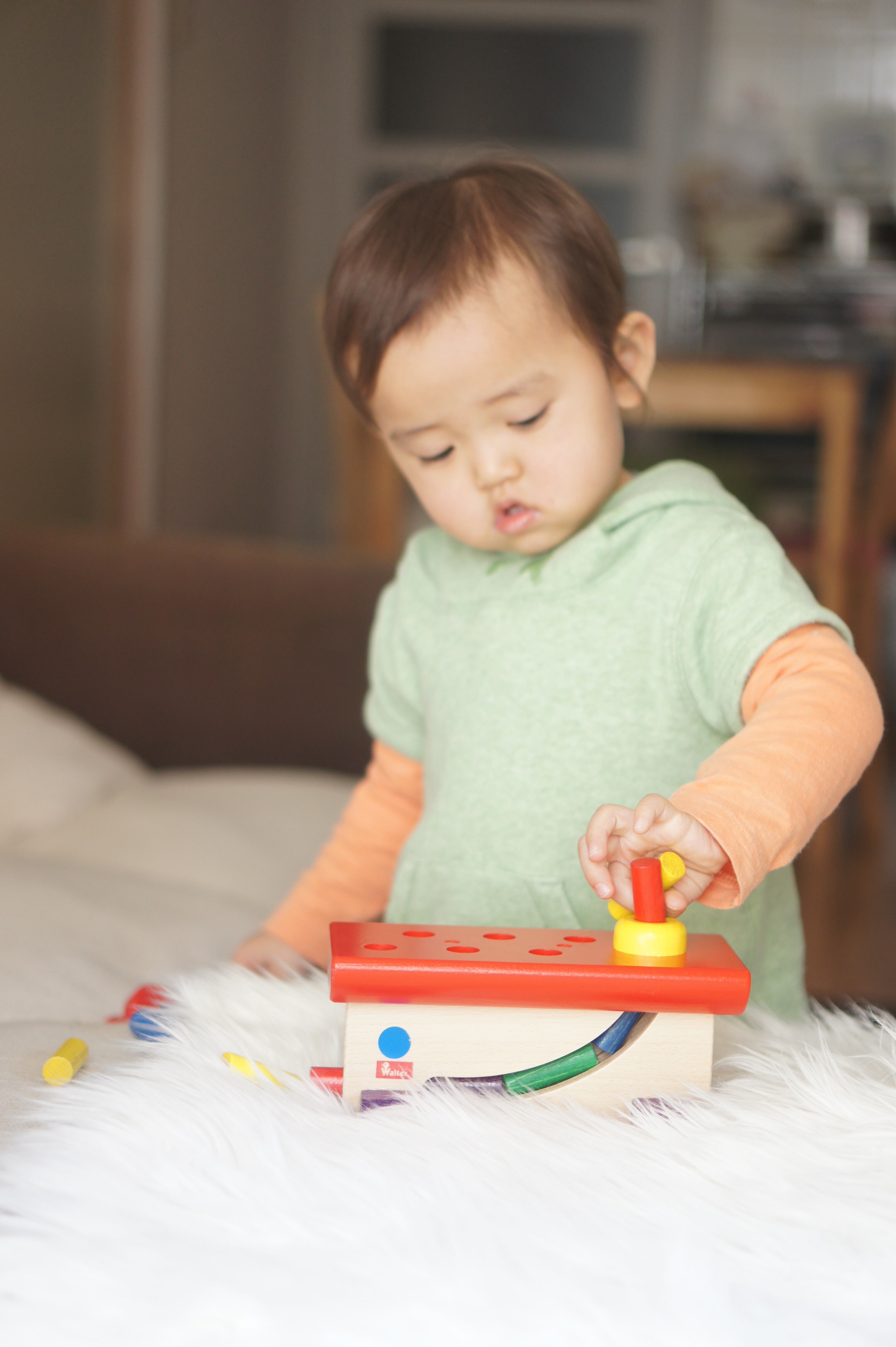 穴があると、不思議とのぞきたくなったり指や物を入れたくなる…人間の好奇心のなせる業、この好奇心と行動力があるからこそ、人間は「考える」ことを始めたのですものね。幼児も穴とボール・ペグを組合わせた遊びが大好きです。なかでも、特に人気のおもちゃ3点をお勧めします。